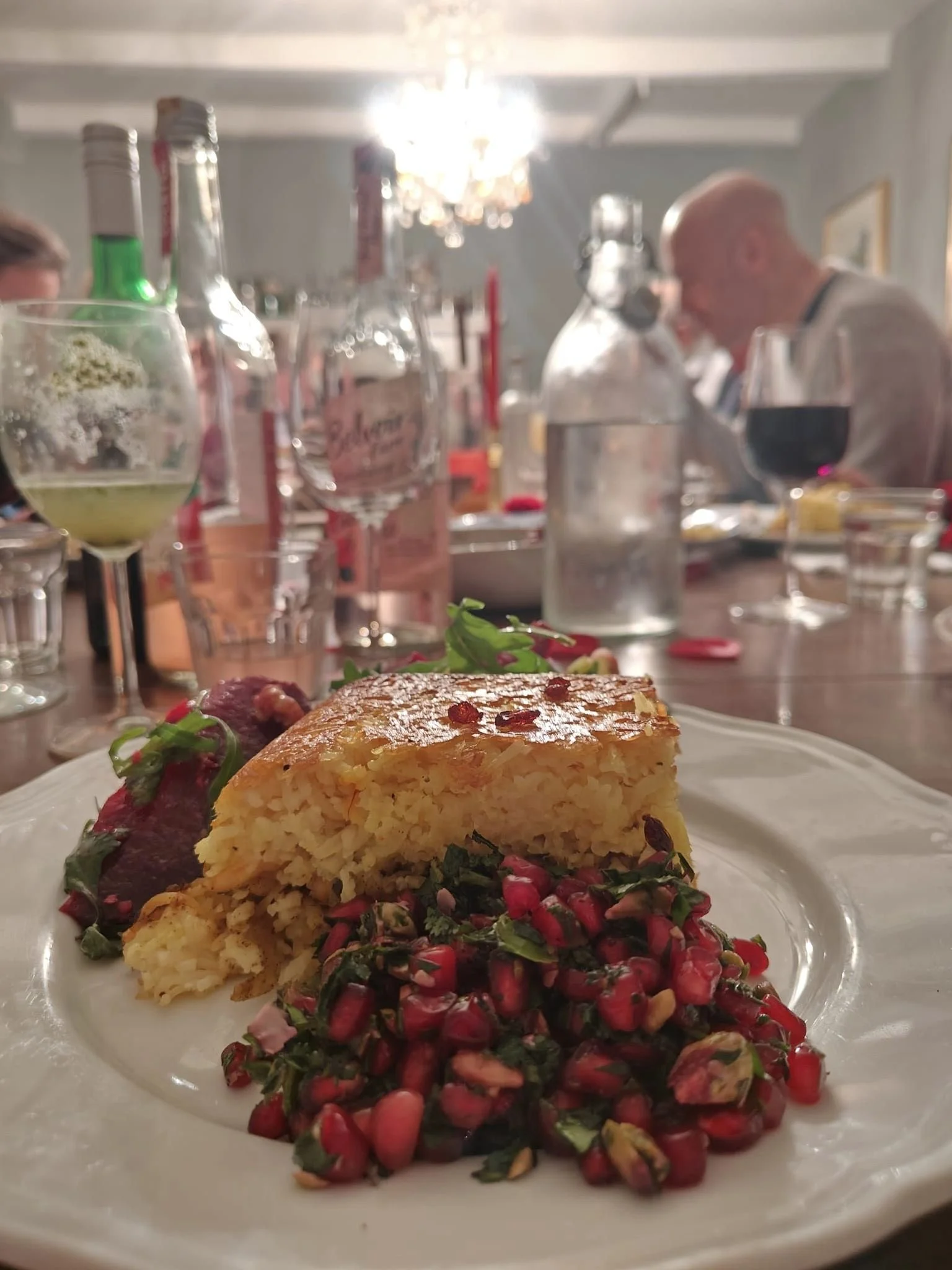 Accompanied by vibrant beetroot, leek, and walnut salad, and a refreshing Pomegranate, pistachio, and herb salad.